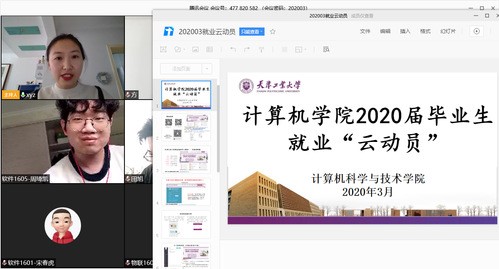 会上,首先是张莘苑针对就业相关问题对全体参会人员进行培训。她围绕“一看、二登、三投、四签、五查、六下”,详细介绍了毕业生查看就业通知的官方途径、如何登录使用就业系统、投放个人简历,网签三方的注意事项,并结合线上同步提问,详细解答了毕业后档案、户口、党组织关系转移等问题。结合往届员工就业情况,分别针对考研复试、调剂,出国等不同群体提供了可行性意见建议,接着向全体参会人员推送了公司精心整理的“就业指导服务加油包”,并请全体员工骨干将公司春季网上双选会、公司考研帮帮团活动周知到班级的每一个同学。最后,学办主任田旭老师针对此次就业视频会后期工作提了三点要求,一是“线上已开学,工作不停摆”,请全体毕业班辅导员自今日起全面铺开线上就业工作指导,结合员工需求做实做细;二是“班会只是形式,就业才是重点”,请各班级负责人根据公司要求及时邀请班导师参加班级线上就业视频会,做到一个也不能少,将就业相关信息周知道每一个同学;三是“做好防护,积极行动”,请各班负责人通知到班级每一位同学,疫情防护期间务必做好自我防护,做好毕业设计,服从各项管理,积极线上就业,静等开学相见。