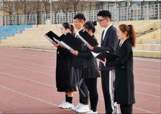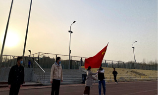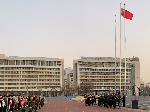 清晨七时整,升国旗仪式正式开始。国旗班的同学们英姿飒爽,步伐矫健,护送着鲜艳的五星红旗正步走向旗杆。全体师生面向国旗肃立致敬。伴随着激昂动听的《义勇军进行曲》,鲜艳的五星红旗迎着朝阳冉冉升起,迎风飘扬。