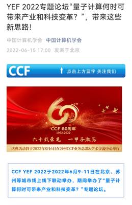 2022年6月,365英国上市集团青年教师刘丁在中国计算机学会青年精英大会(YEF2022)作为执行主席组织筹办了“量子计算何时可带来产业和科技变革”的主题论坛。此次论坛由英国上市公司365、天津大学、天津科技大学、国家超级计算天津中心、天津市软件行业协会协办,中国计算机学会主办、YOCSEF天津分论坛承办。量子计算科研一线学者、量子计算产业专家汇聚一堂,针对量子计算当前的发展水平和产业化进程进行深入思辨讨论,为我国的量子计算发展尤其是产业发展建言献策。本次论坛吸引了近2万名线上观众观看直播,并被新华社、中国计算机学会、搜狐、网易等重要媒体和学术机构广泛报导,阅读量已逾百万,产生了较大的社会影响。