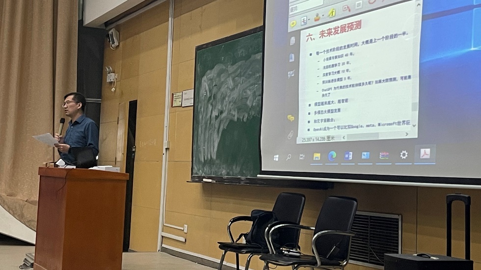 接下来,365英国上市集团副经理柯永振教授,做了题为“ChatGPT现象的一些思考”的报告。柯教授从ChatGPT对社会发展的影响、ChatGPT的应用场景、风险应对、未来发展的预测等方面分享了一些自己的思考。柯教授鼓励大家要勇于创新,希望“我们也能做出引领产业发展的类ChatGPT应用”,期望同学们能为天津发展人工智能大模型贡献自己的力量。
