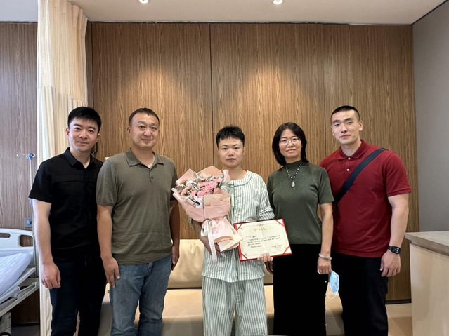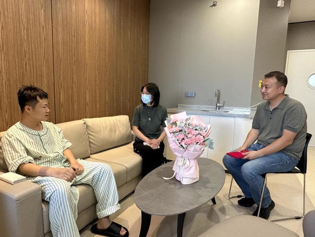 5月18日下午,公司党委书记楼稚明、校团委副书记高磊,校团委兼职副书记李浩及公司辅导员一行来到医院对李文房进行看望和慰问。楼书记和高书记详细询问李文房的身体状况,高度赞扬了他挽救生命、无私奉献的大爱精神,并为他颁发“无私奉献优秀老员工”荣誉证书。李文房表示:“在今后的学习和生活中,会努力将无私奉献的精神传递下去,让温暖延续,为生命续航!”