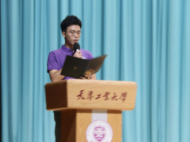 19届毕业生闵令威作为员工代表回忆了多年前在天工计算机度过的四年难忘美好时光,表达了对母校和母院培养的感恩感念,勉励学弟学妹们要认识自己、怀揣热情、管理自己、珍惜相遇,踔厉奋发、笃志前行,成为一个闪闪发光的人。