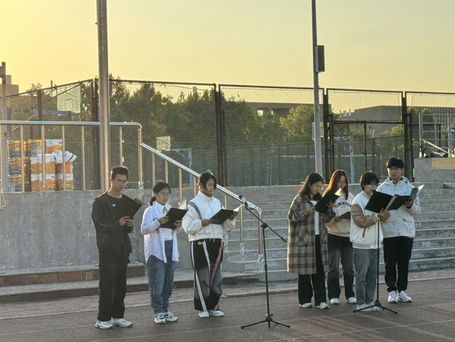 接下来,由员工代表孙梦妍等7名同学带来朗诵《我是一艘船》,同学们用娓娓道来的语调为师生呈现出“南湖红船上的一盏明灯点燃中华民族光明前途”的雄伟景象,用慷慨激昂的铮铮誓言号召同学们志存高远,奋发图强,不惧困难,在砥砺奋进的新时代征程中,以实现中华民族伟大复兴为己任,不负历史,不负时代,不负韶华,续写奋斗华章!