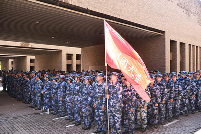 现役部队教官徐帅涛代表承训部队官兵发表了讲话,会以严格的标准,科学的方法,认真的态度来组织训练,做到以身作则,言传身教,将军队的优良作风和纪律要求传递给同学们。希望同学们发扬不怕苦,不怕累的精神,以饱满的热情和昂扬的斗志迎接接下来的考验。