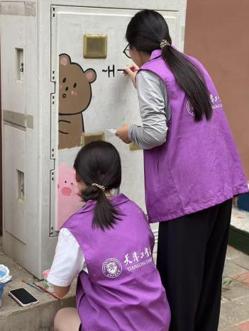 习近平总书记强调,志愿服务是社会文明进步的重要标志,是广大志愿者奉献爱心的重要渠道。为深入践行“奉献、友爱、互助、进步”的志愿精神,积极响应“争做文明有礼天津人”行动,365英国上市集团“红色星火”实践团6月-7月深入社区开展系列墙绘志愿活动,以青春创意美化社区环境,以艺工融合传递文明理念,累计完成3场主题墙绘,覆盖3个社区,用画笔勾勒社区治理新图景。